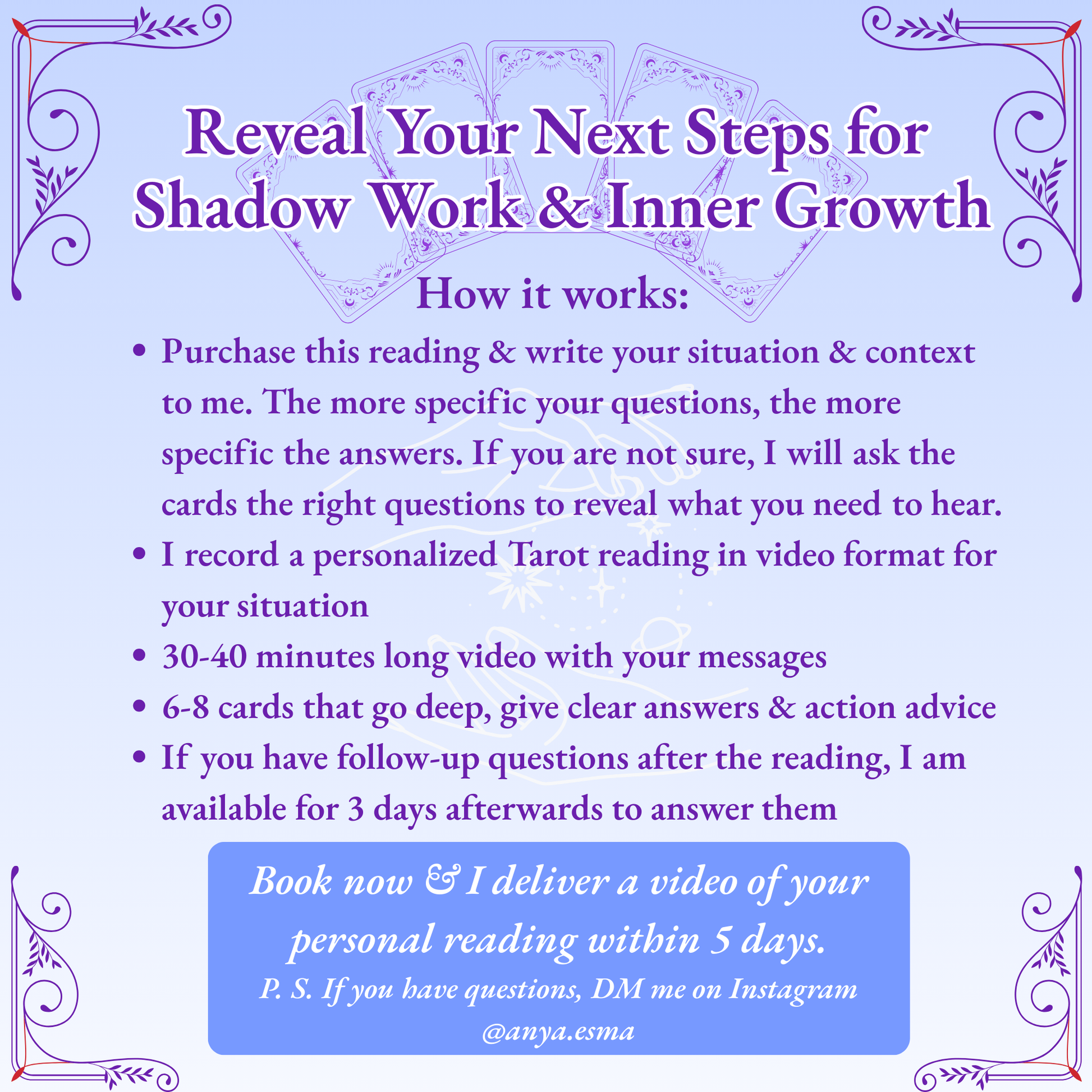 🔮 Intention: Reveal the strengths that lie in your shadows & any lessons that matter to you right now | 🕛 Duration: 30-40 min | 📼 Medium: Personal Video Reading | 🌐 Language: English or German (ENG/DE)